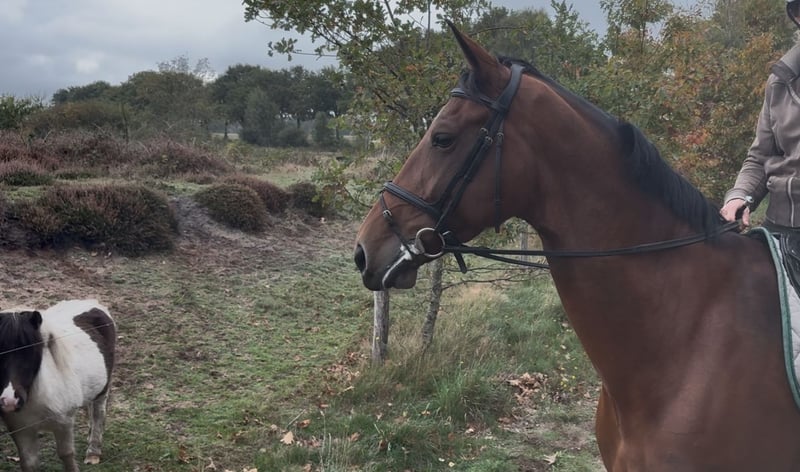 For sale due to illness! Kaat is a stunning, large KWPN mare aged 10 years. She was purchased from the breeder as a three-year-old and has served as a family horse. Thanks to her honest character, Kaat has remained with the same family throughout the years. In the dressage arena, Kaat is a real eye-catcher! She masters all exercises up to Z1 level and shows talent for passage and piaffe. Weekly, she is taken out on outdoor rides. All lateral movements—from shoulder-in, travers, to piaffe in trot and canter—Kaat performs effortlessly. She is easy to sit on because she maintains her impulsion. Kaat is eager and attentive, with a cooperative nature, making her easy to ride. She is not sensitive and has a calm, grounded temperament. Kaat is an honest horse. She knows her place and is well-behaved when grooming and tacking up. She has been with the same owner for seven years, and due to circumstances, she is now temporarily housed here. She handles this very well. She is not spooky on unfamiliar terrain and remains calm in both indoor and outdoor arenas. You can only take Kaat out on outdoor rides. In a group, she can lead or follow, galloping at the front or rear. She is well-mannered and responds well to the rider’s aids. Kaat would make an excellent hunt horse, as she is willing to go anywhere and through anything when asked. Kaat has a lot of drive and enjoys moving out nicely in front of the rider. Her beautiful front leg action draws attention, and she has superb, extended gaits, which she can also close up easily. Kaat is bred in the KWPN studbook and comes from a distinguished dam line. She is healthy and has never sustained an injury. She stands 1.70 meters tall and is currently 10 years old. Interested in purchasing her? You are welcome to come meet and ride her. Kaat can be inspected if desired, with the costs borne by the buyer.
