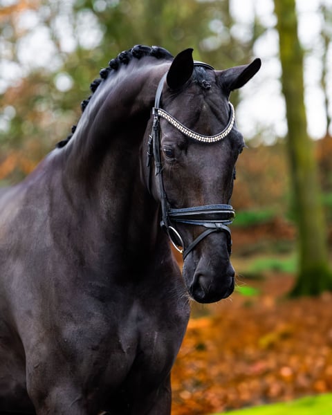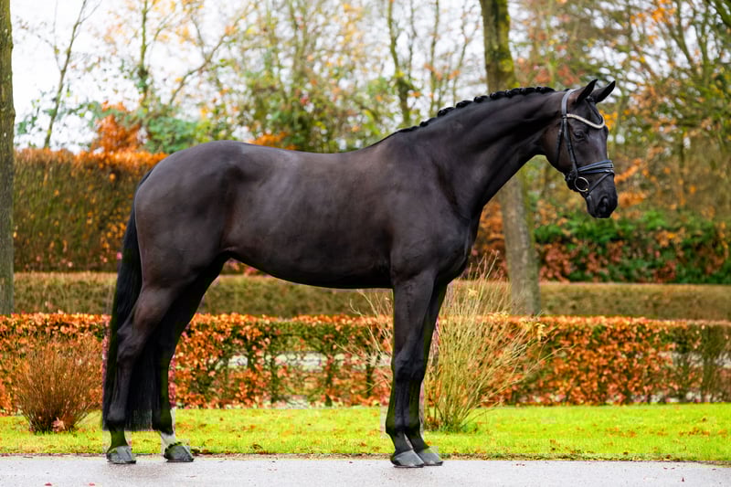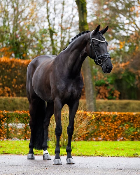 For sale: Luna, a very elegant black Elite Sport mare with a height of 1.70 m. Luna's sire is Hero (Johnson x Ferro x Ramiro Z). Her dam, Purdy, was also an Elite Sport mare and competed successfully in the Subtop. Luna received an excellent evaluation during the Central Inspection and was the top of her group. We also own two of her offspring. The oldest daughter (O'Geniaal) is a provisional Keur mare, successfully competing at M2 level in dressage and currently being prepared for Z2. She is scheduled to participate in the Central Inspection later this year. The youngest daughter, who will turn four this year, has recently been backed. She has a fantastic temperament, high willingness to work, and quick learning ability. Both are still in my possession and stabled at the same facility as Luna. Luna is a very willing mare, easy to ride (ridden in a snaffle), but also suitable for riding in a curb bit and snaffle. She is still actively competing about twice a month. She is classified ZZ-L and has already earned the necessary points for ZZ-Zwaar, in which she will soon be competing. Luna features a very expressive walk, a light-footed trot with excellent suppleness, and a highly functional canter, allowing her to perform flying changes and series of jumps with ease. She has a lovely character, is eager to work, enjoys running, and is very rideable. Thanks to her friendly nature, Luna is particularly suitable for riders transitioning from pony to horse, as well as for Juniors or Young Riders. She is very easy to transport, can be loaded alone, remains calm in the stable, and is easy to handle at the farrier. Luna was fully inspected as a three-year-old and most recently on October 8th. She has undergone both clinical and radiographic examinations (including her back and neck). Luna falls into the higher price range. For more information, please call or WhatsApp +31 (0)6 30 81 21 71 or email lotjesteen@hotmail.com.