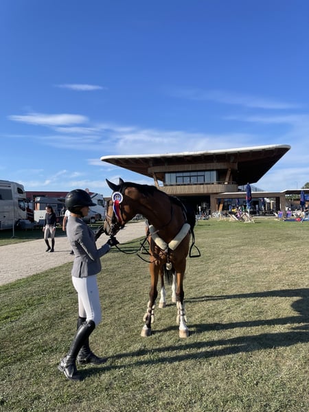 Klug, vorsichtig, schön zu reiten und ehrlich! Entdecken Sie diese wunderschöne KWPN-Stute, geboren 2016, eine atemberaubende hellbraune Schönheit mit einem Herz aus Gold. Egal, ob Sie Kinder sind, die ihre ersten internationalen Turniere bestreiten möchten, ein ambitionierter Amateur, der bei CSI1* glänzen will, oder einfach nach einem Pferd suchen, das Sie bis 1,35 m zu zahlreichen Erfolgen trägt – diese Stute könnte genau die richtige Wahl für Sie sein. Mit ihrer liebenswerten Einstellung, immer alles richtig machen zu wollen, ihrer Cleverness und Vorsicht berührt sie nie eine Stange und ist stets geradlinig. Mit ihr macht jede Parcoursfahrt Spaß. Diese Stute ist gesund, fit und bereit, ihre Reise mit einem engagierten Reiter fortzusetzen. Verpassen Sie nicht die Gelegenheit, diese außergewöhnliche KWPN-Stute mit einer vielversprechenden Zukunft zu besitzen. Kontaktieren Sie uns noch heute, um mehr zu erfahren und einen Besichtigungstermin zu vereinbaren! +49 175 1932328