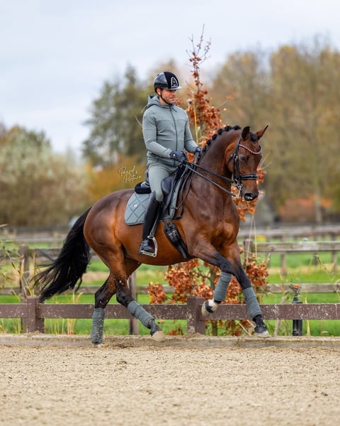 Przepiękna i zdrowa klaczka na sprzedaż. Jej pochodzenie to Johnson x Florencio. Jest zakwalifikowana do klasy lekkiej ujeżdżenia i ma potencjał na więcej. Opanowała serie zmian co 4, 3 i 2 kroki. Zmiany na przejście, piaffe i passage są w trakcie treningu. Klacz pochodzi również z wybitnej linii matczynej, co czyni ją jeszcze bardziej interesującą! Posiada aktualny raport RX z kliniki weterynaryjnej we Wolvega (kończyny, szyja i grzbiet). Prosimy o kontakt przez WhatsApp w celu przesłania filmów!