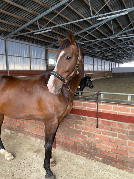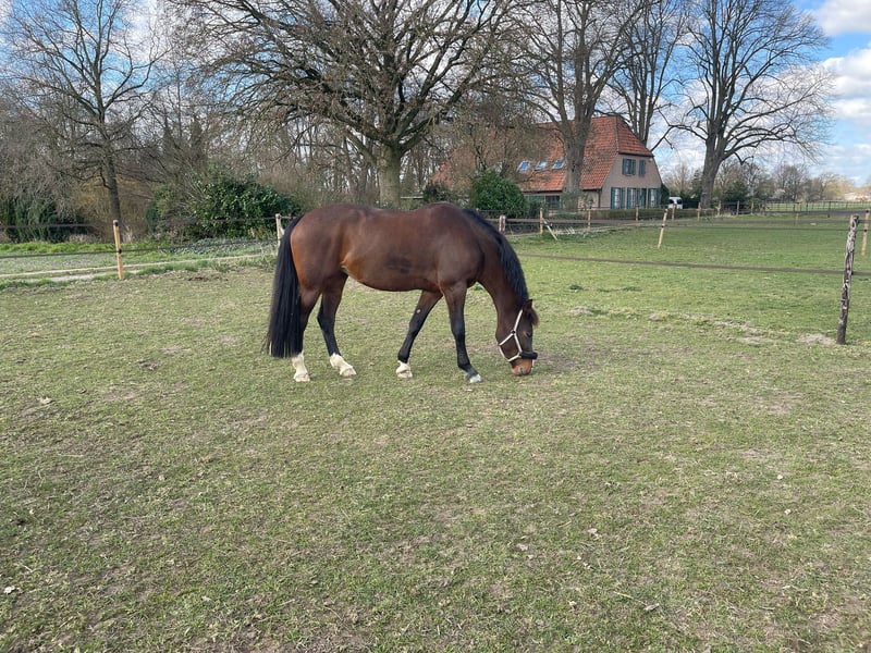 Met pijn in ons hart moeten we afscheid nemen van onze twaalfjarige merrie. Ik heb haar pas negen maanden geleden gekocht, maar het is enkele maanden geleden aan het licht gekomen dat ze peesblessures aan beide achterbenen heeft. Helaas kan ze alleen nog in stap gereden worden en is ze daarom bijzonder geschikt als lief gezelschapspaard of voor de fokkerij. In de omgang is ze zeer mensgericht, heeft ze een lage rang en is ze bekend met zowel honden als kinderen. Bij interesse ontvang ik graag een WhatsApp-bericht op 0176 64481422.