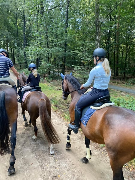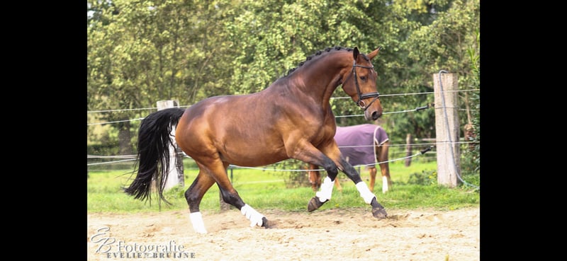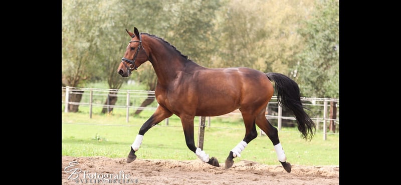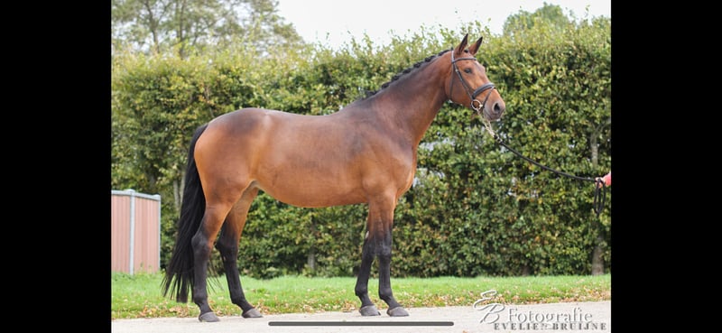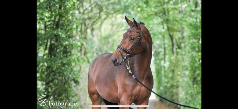 Yegua muy dulce y honesta con tres trotes excelentes. Nos ha dado cuatro potros grandes y hermosos, y actualmente todavía tiene un potrillo en sus patas. Es una madre muy buena, sociable y fácil de preñar. Proviene de una línea con muchos resultados deportivos destacados (madre ZZ-Licht, medio hermanos/as, Z1, ZZ-Zwaar, nivel Gran Premio, y en la línea familiar hay muchos otros caballos de doma con excelentes resultados). También produce potros bien conformados y con buen movimiento, con mucha presencia. Ella misma ha sido entrenada en doma, en niveles STB-EXT, D-OC. Actualmente está siendo retomada, y estuvo montada a nivel B/L hasta unas semanas antes de dar a luz; su potrillo tiene ahora 6 meses. También ha salido en excursiones con un grupo y ha sido montada en terrenos desconocidos. Lo hace de manera muy tranquila y obediente. Lamentablemente, está en venta debido a que debe quedarse con su potrillo. Bajo la silla, puede ser algo enérgica, pero siempre honesta, por lo que no es adecuada para jinetes principiantes. Es una yegua sensata y equilibrada, muy dulce en el trato y súper sociable. La prioridad es un hogar de 5*, más que el precio.
