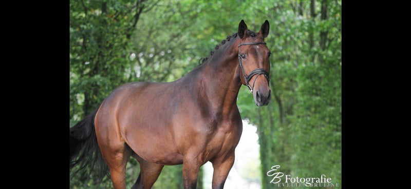 Super lieve en eerlijke merrie met 3 goede gangen. Heeft ons 4 super mooie grote veulens gebracht en momenteel nog een veulen aan de voet lopen. Ze is een erg goede moeder, sociaal en makkelijk drachtig. Komt uit een stam met veel goede sportieve resultaten (moeder ZZ-Licht, halfbroers/zus, Z1, ZZ-Zwaar, Grand Prix niveau en verder in de lijn nog veel meer goed presterende dressuurpaarden). Brengt zelf ook goed gebouwde en goed bewegende veulens met veel maat. Zelf is ze dressuurmatig gereden, STB-EXT, D-OC. Wordt op dit moment weer opgepakt, is tot enkele weken voor bevallen bereden op B/L niveau, veulen is nu 6 maanden oud. Ze ging ook met een groepje mee op buitenrit en is op vreemd terrein gereden. Dit doet ze heel makkelijk en braaf. Staat helaas te koop vanwege het aanhouden van haar veulen. Onder het zadel is ze wel wat voorwaarts, hierin zeker eerlijk, maar daardoor niet geschikt voor de beginnende ruiter. Het is een verstandige en nuchtere merrie, mega lief in omgang en super sociale. Goed 5* huis belangrijker dan de prijs.