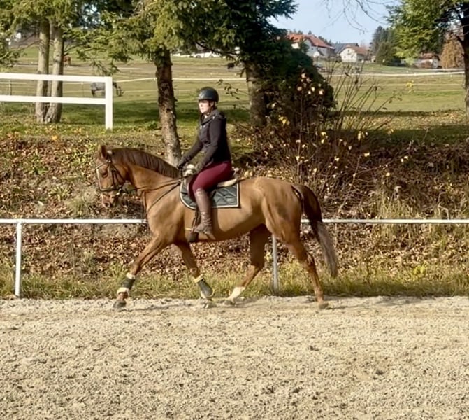 Berta is a very pretty 14-year-old KWPN mare. Standing approximately 16.1 hh, this horse has already achieved success internationally in eventing and show jumping. Berta is also very well-suited for dressage and always shows a motivated and willing attitude. In handling, she is a true gem and gets along very well with other horses. Berta is a horse that will bring joy to any rider who appreciates a bit of "go" in their mount. Of course, she is healthy and in excellent condition. Additional information and videos are available via WhatsApp or by phone at: +43 660 3632373 Location: Pelmberg 15, Upper Austria Viewing and test riding are available by appointment! Transport can be arranged if needed.