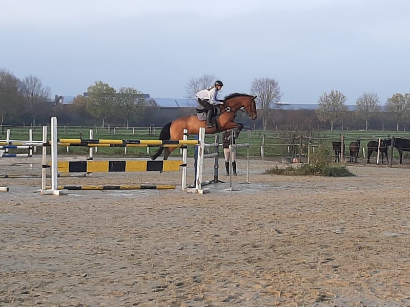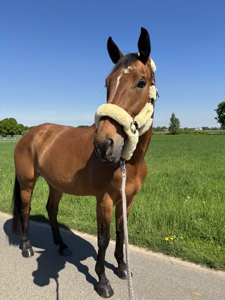 Due to personal reasons, I am reluctantly offering my mare Heaven for sale. Heaven is a approximately 16.1 hh chestnut KWPN mare, born in 2012. She has three solid basic gaits and is bred for jumping (Verdi x Farmer), making her also an interesting option for breeding. Heaven is well-behaved on trail rides, whether alone or in a group, and enjoys varied training routines and plenty of cuddling. She is an all-rounder and has already been ridden by beginners, making her an excellent school horse for amateurs. Her temperament has never caused issues in my experience, not even in show jumping, and she has been veterinary checked. About two years ago, she suffered a suspensory ligament injury, which was treated successfully, and she took a 13-month break. Since then, I have decided not to continue competing her in show jumping and have only ridden her recreationally, doing small jumps. The injury has not caused any further problems. She is currently stabled in a paddock box with daily turnout of 8 hours on paddock or pasture, in a small mare group. I wish for her to continue having plenty of turnout and to find a home where she will be loved and considered a family member — she truly deserves it. She is naturally loadable, regularly vaccinated, and has been checked by the equine dentist. She can be sold with all tack and accessories, as I am moving away and will temporarily stop riding. Place before price. No dealers!