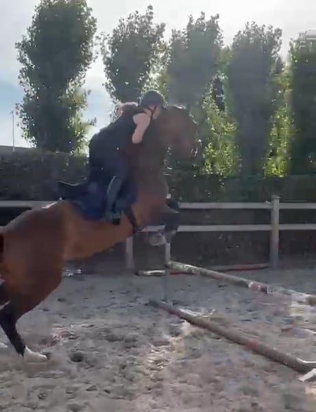 Avec le cœur lourd, nous proposons à la vente notre jolie jument KWPN de 14 ans. Cette énergique polyvalente, mesurant 1,65 m au garrot, est une dame volontaire et enthousiaste, qui aime travailler pour son cavalier. Elle possède une belle lignée, étant la petite-fille de G. Ramiro Z et Indoctro, ce qui se reflète clairement dans ses qualités de saut. Elle n’est pas peureuse, saute avec beaucoup d’engagement et d’énergie. Chez son précédent propriétaire, elle a sauté des parcours de 1,10 m. Actuellement, elle saute 1,00 m avec sa cavalière actuelle, mais possède certainement le potentiel pour aller plus haut. Elle a également de l’expérience en concours d’endurance (niveau national 1,00 m) et en dressage (niveau B1). Elle a de bonnes bases et aime travailler. Elle est moins adaptée à un cavalier débutant et conviendrait mieux à un cavalier confiant et cohérent, capable de canaliser son énergie. Caractéristiques : • Facile à charger dans la remorque • Sage chez le maréchal-ferrant (montée avec fers) • Facile à longe • Apprécie le pâturage Entretien : • Vaccins et vermifuge à jour • Dentiste consulté en juillet • Examens cliniques en mai 2025 • Passeport disponible Elle mérite un vrai foyer de cinq étoiles avec suffisamment de pâturages, d’attention et un cavalier avec qui elle crée une bonne connexion. La vente intervient uniquement en raison du manque de compatibilité entre la cavalière et le cheval. Prix : 11 000 €, y compris une selle adaptée. Des vidéos sont disponibles sur demande. Pour toute question sérieuse, n’hésitez pas à nous contacter pour plus d’informations.