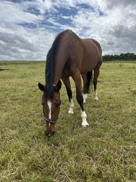 Met pijn in het hart geef ik mijn geliefde merrie weg, omdat ik haar helaas niet de tijd en aandacht kan geven die ze verdient. Ze wordt in mei 16 jaar en heeft geen gezondheidsproblemen; ze loopt naaktvoets. Ze is gevoelig, wat zich snel laat merken in een nieuwe omgeving, omdat ze dan wat onrustig wordt. Het kost tijd om met haar vertrouwd te raken. Ik hoop dat ze een fijn baasje vindt dat weet hoe met haar om te gaan. Ik ben haar ruiterlijk gezien niet helemaal op haar niveau, maar ik ben al eens met haar in het terrein geweest (samen met andere paarden). Ze loopt in draf soms wat sneller als ze onzeker is, maar ik denk dat routine hier een grote rol speelt. Als je interesse hebt, neem gerust contact met me op; ik vertel je graag meer telefonisch. De keuring kan desgewenst worden gedaan door je eigen dierenarts.
