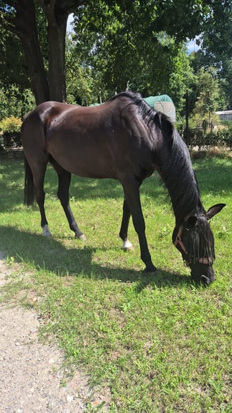 For sale: Sweet and Reliable KWPN Mare With a heavy heart, we are offering our 16-year-old mare for sale. She is bombproof, well-behaved around people, and has a strong dressage pedigree. She has been ridden and is calm under saddle; last year, she was ridden a few times but stopped due to dental issues. This mare has always been gentle and dependable, both in the stable and in the pasture. She enjoys her rest and is happiest as a pasture companion among other horses. She can also serve as a broodmare due to her excellent pedigree: Sire line: Vivaldo x Polansky x Kostolany Dam line: Zildegunder x Obelisk, El Corona, and Clavecimbel. Both lines have strong dressage bloodlines. In short: a super sweet mare who can provide companionship and enjoyment in the pasture for years to come or potentially be used for breeding. Always vaccinated and dewormed on time. Recent dental check and farrier visit. More information or a viewing? Feel free to send a message!