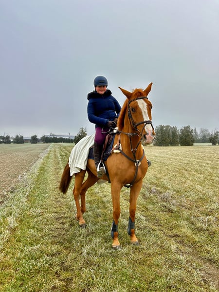 Schweren Herzens trennen wir uns von unserer Finni, da Sie leider ihre Lust am Turnierreiten verloren hat. Wir suchen für Sie eine Familie die Sie genauso lieb hat wie wir. Sie geht gerne ins Gelände (alleine und in der Gruppe), verfügt über eine solide Grundausbildung und war in den 5 Jahren bei uns noch nie krank. Unsere Tochter hat mit ihr letztes Jahr das Reitabzeichen 5 komplett gemacht und ich vom RA 4 die Dressur. Absolut Platz vor Preis.