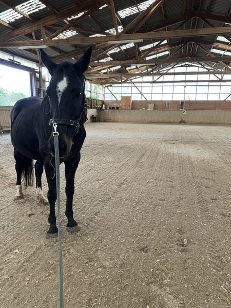 Hallo, Raven ist eine 16 Jahre alte und ca. 1,65 m große KWPN Stute. Sie ist Barhufer, verladefromm und sehr lieb im Umgang. Sie geht super gerne spazieren und ist generell vom Boden aus sehr viel gelassener und glücklicher als beim reiten. Sie braucht einen entspannten Menschen, der mit viel Zeit und wenig Druck mit ihr arbeitet, da sie sonst schnell unsicher und hektisch wird. Körperlich ist sie in der Lage geritten zu werden, doch am liebsten würde ich sie in ein reines Bodenarbeits und Ausreit Zuhause abgeben, da sie leider in der Vergangenheit wohl nicht immer gute Erfahrungen mit dem Reiten gemacht hat, bei uns wurde sie die letzten Jahre sehr wenig bis garnicht geritten. Ins Gelände geht sie alleine oder mit anderen und ist im Straßenverkehr super unerschrocken. Sie steht in einem Offenstall und steht gut mit anderen Stuten und auch Wallachen zusammen, diese Haltung (oder vergleichbar) wünsche ich mir auch für sie in der Zukunft. Natürlich ist sie auch regelmäßig entwurmt, geimpft und die Zähne werden jährlich kontrolliert. Bei weiteren Fragen stehe ich gerne zur Verfügung. Es ist kein Notverkauf, sie wird lediglich aus Zeitmangel abgegeben und es gilt Platz vor Preis!