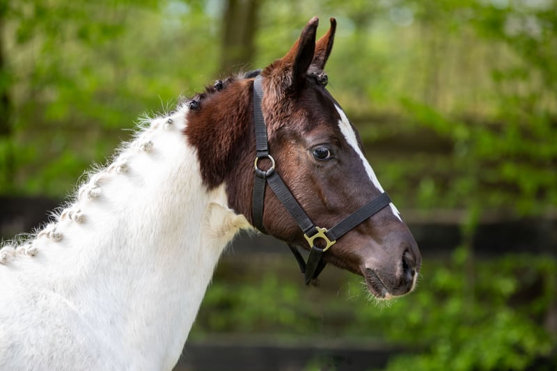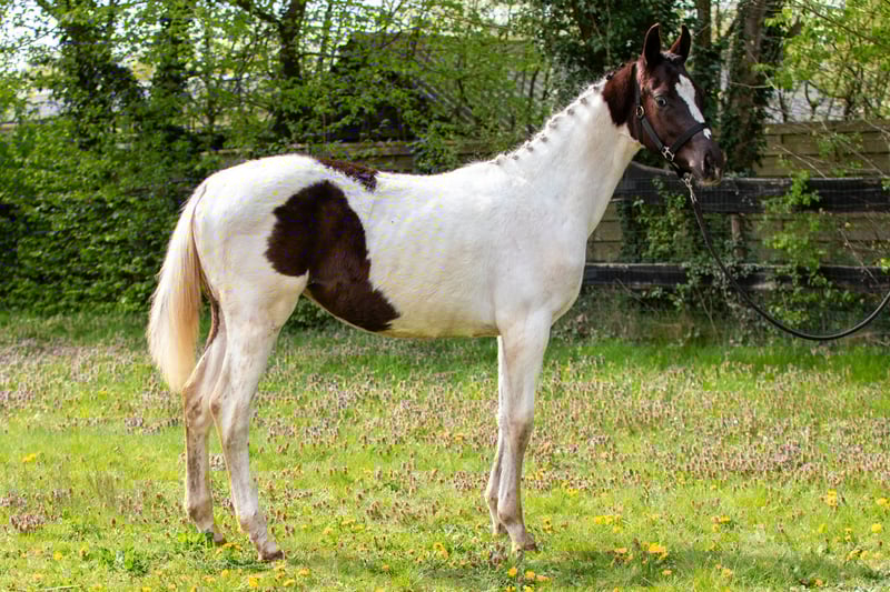 Una splendida e affettuosa cavalla mare dal mantello pezzato molto compatta.