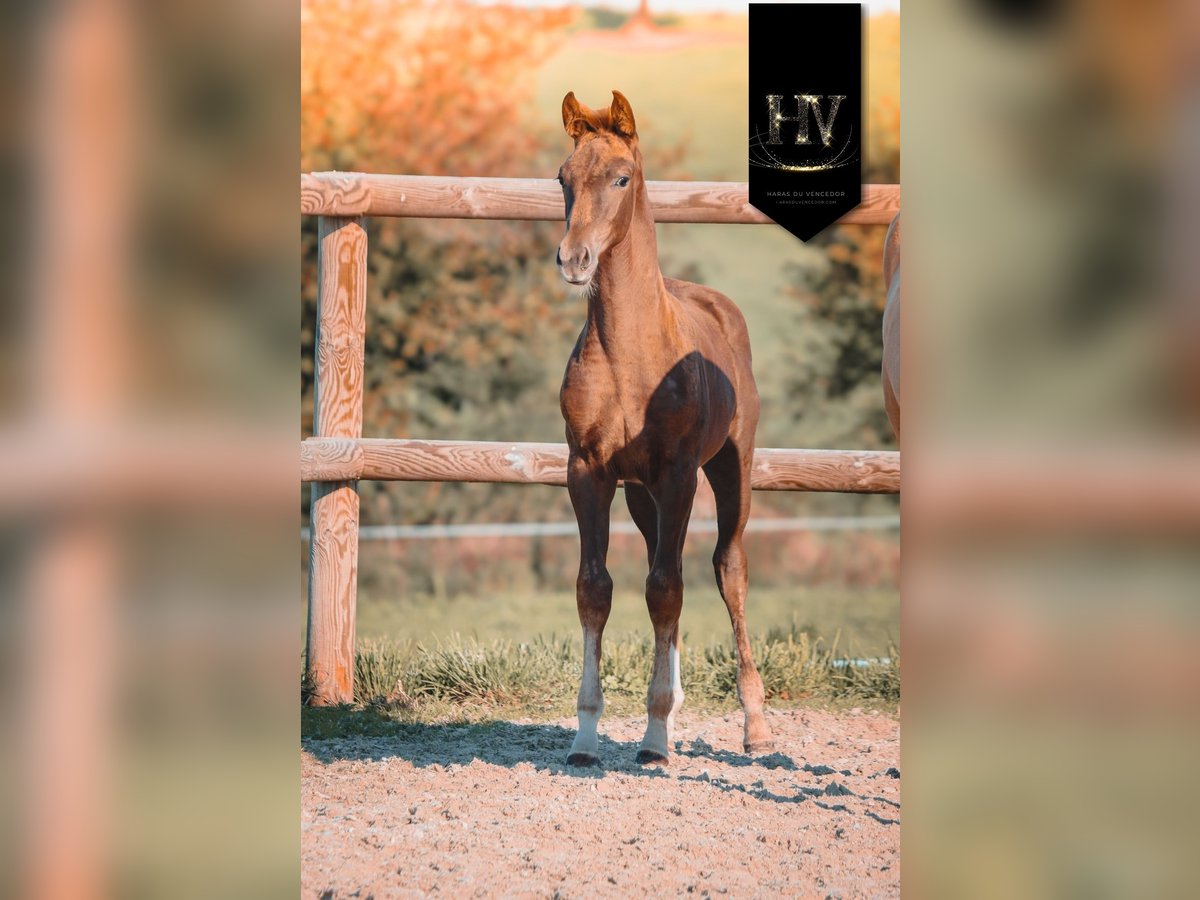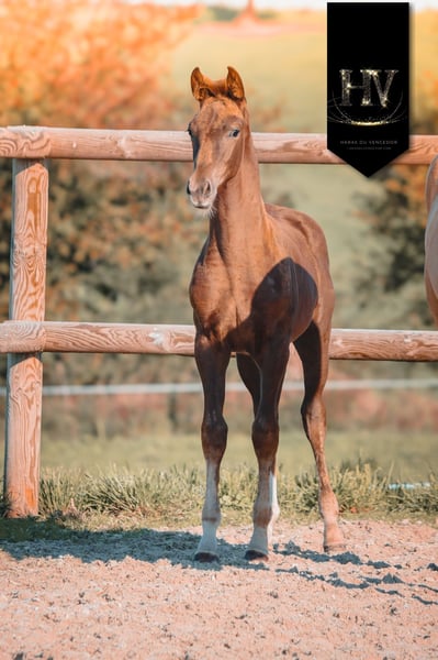 KWPN Filly, born June 22, 2025, sired by Vitalis out of Carenina (Baron x Fürstentern). This filly features a modern, athletic build with strength, bone, and excellent overall conformation, making her ideal for a competition-oriented development program. She is characterized by a naturally uphill movement, including: - An active, regular walk - A spacious, cadenced, and uphill trot - A balanced canter with suppleness and good mechanics Her ease of movement, natural balance, and harmonious build suggest strong potential for the young horse circuit, with a logical progression toward high-level sport. Coming from a renowned lineage that combines quality gaits, movement, and athletic aptitude, Victory Gold Of Vencedor is well-suited for a training, development, and competition project.