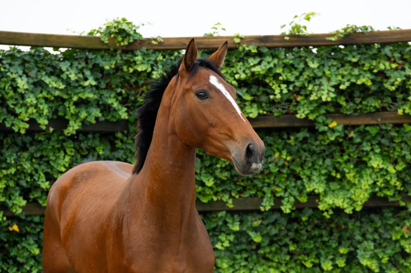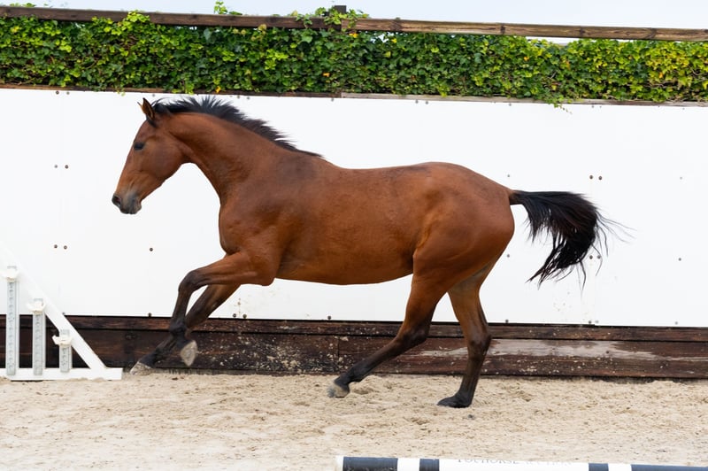 The two-year-old Tiny-Sertha stands out with her good, powerful canter and blood. She jumps the fences with ease. Sire Astronomic vh Legita Hof Z is eight and has already started internationally at 1.50m level with Angelique Rüsen and at 1.45m level with Christian Ahlmann. He is bred out of the 1.55m GP mare Naturelle vh Legitahof, half-sister to World Cup stallion Vagabond de la Pomme. Dam Osertha is a six-year-old daughter of the 1.60m Grand Prix stallion Apardi. Granddam Woodfield Cisertha (Verdi TN) is a KWPN elite mare who jumped international 1.40m courses.