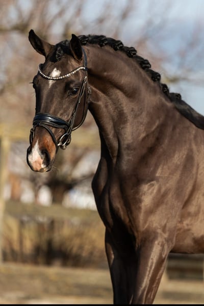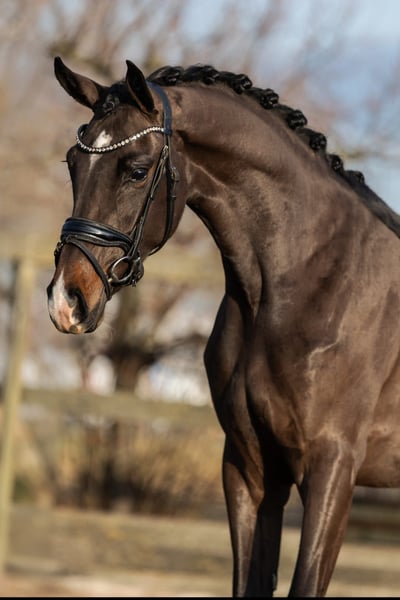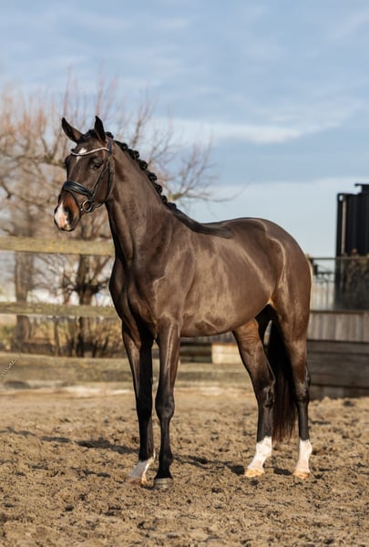 Like a fairy tale come to life This 3.5-year-old, backed KWPN Warmblood mare captivates from the very first moment. Delicately expressive, curious in nature, and naturally elegant, she possesses everything one could wish for in a young mare with a bright future. Gently backed, she proves to be well-behaved, eager to learn, and sensitive. She approaches new tasks with calmness and confidence and strives to please her handler. Her movements are relaxed, harmonious, and carried with ease— a young mare that can develop without pressure, with patience and understanding. Whether as a future sport partner or as a heart horse for someone wishing to share the journey. Pedigree This young KWPN mare comes from performance-oriented, proven Dutch sport lines. Her pedigree combines modern dressage sires with proven rideability, quality movement, and a balanced temperament. A pedigree that promises both sporting potential and a reliable riding horse with a fine character.