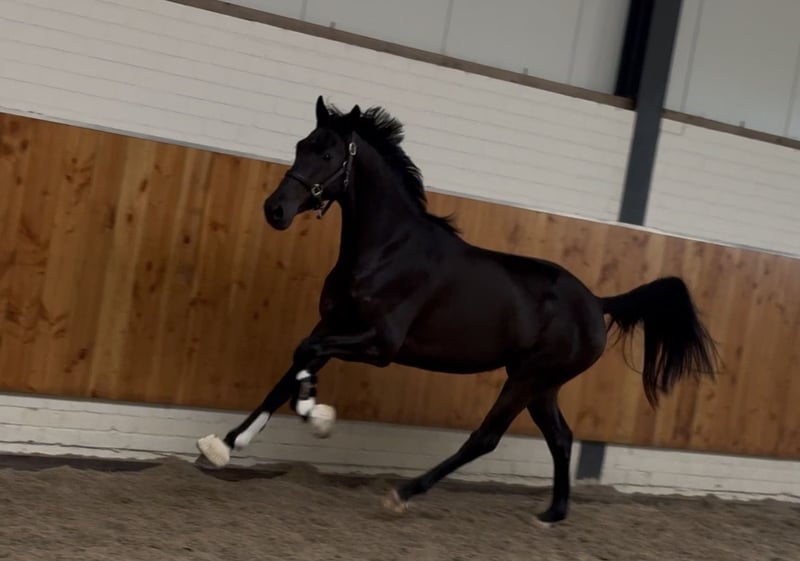 Zeer kwaliteitsvol jong dressuurpaard uit goede moederlijn en de zus van de tophengst Security (v.Secret). Aansprekend jeugdig model met veel uitstraling. Beweegt met veel kracht en techniek, goede balans en veel lossigheid. 3 Uitstekende gangen. Correct op de benen en gelijke voeten. Komt recht uit de groepsstal en toont een fijn karakter in de omgang. Rontgenologisch 100% in orde.