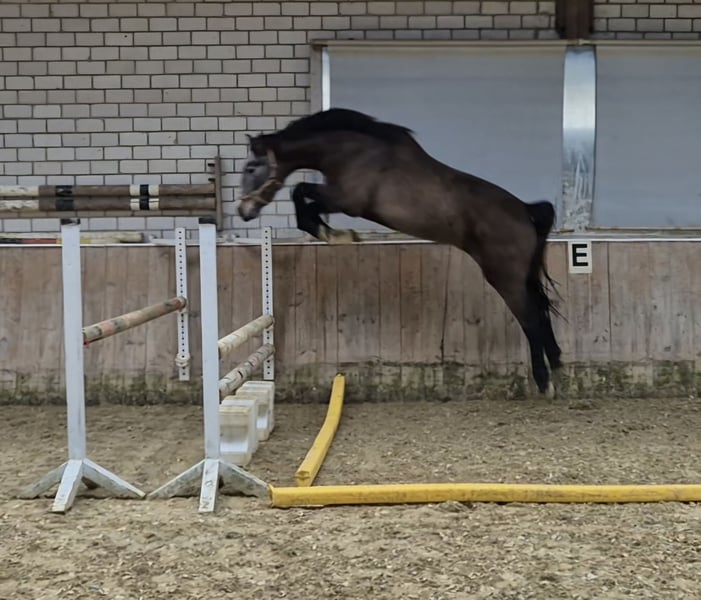 Super pretty 3yo mare by the great Ermitage Kalone out of a dam by Harley VDL x Cascavelle. Very good damline. She already shows a lot of quality in her first loose jumps ever