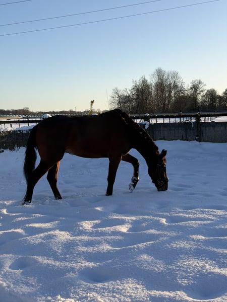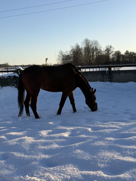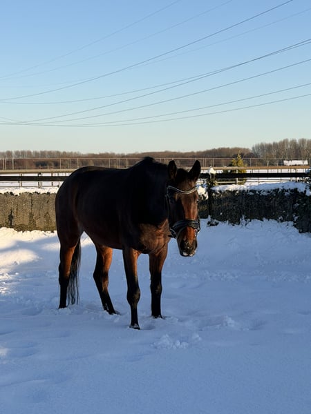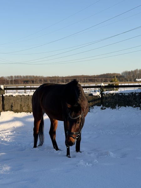 South Park’s Wiggle Eqx, roepnaam Skippy, is een aansprekende KWPN-merrie, geboren op 10 mei 2022. Met haar stokmaat van 1.52,5 m en haar mooie donkerbruine kleur is zij een pony met uitstraling én kwaliteit. Skippy is zadelmak en laat nu al zien dat zij veel potentie heeft voor zowel de dressuur- als springsport. Dankzij haar fijne instelling, werkwilligheid en nuchtere karakter beschikt zij over alle eigenschappen om uit te groeien tot een echte allround pony, geschikt voor meerdere disciplines. In de omgang is Skippy een uitzonderlijk brave en makkelijke pony. Ze loopt keurig met je mee, kan samen met andere pony’s worden meegenomen en is zeer sociaal naar soortgenoten. Ze staat momenteel dagelijks samen met twee andere pony’s in de paddock en heeft afgelopen zomer 24/7 in een kudde van vier gelopen, wat probleemloos verliep. Ook op stal staat zij rustig en ontspannen. Skippy is braaf bij de hoefsmid en dierenarts en kent geen stalgebreken. Keuren is toegestaan, kosten koper. Door haar fijne karakter en veelzijdige aanleg is zij zeer geschikt als toekomstige kinderpony, mits zij eerst correct wordt doorgereden. Daarnaast is zij een echte ringpony die met haar uitstraling en talent zeker zal opvallen in zowel de spring- als dressuursport. 📍 Prijs: €15.000 📍 Ras: KWPN 📍 Geslacht: Merrie Een eerlijke, talentvolle pony met een gouden karakter en de kwaliteiten om uit te groeien tot een veelzijdige sportpony. Voor nadere informatie of filmpjes gelieve te bellen of appen met 0616519741.