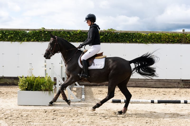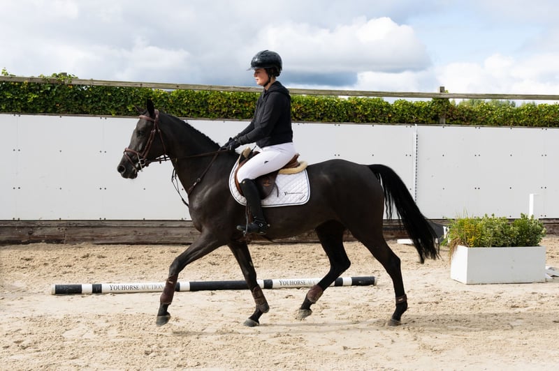 The four-year-old Readynes is a stunning black mare with a good temperament and excellent quality in jumping. She was only briefly backed on video day and had her second ride under saddle. The owner had registered her for free jumping, but due to miscommunication, we tested her under saddle instead. Her mother, Hipsy (Advance), is bred from the KWPN performance mare Anne (Hamlet x Farmer). Anne produced the 1.50m show jumper Kobus (Freedom) and three other jumpers competing at 1.30-1.35m level.