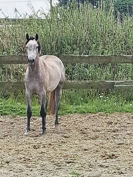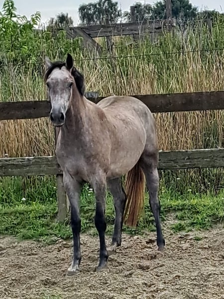 For sale: 3-year-old Hanoverian mare, 1.63 m. Beautiful gray mare. A good jumper with corresponding movement. She has a very good character and is a promise for the future. She has been lunged with a saddle on. The dam line produces very high-quality offspring, and the mother has already had several well-performing descendants; 3 competing internationally in jumping. Suhreste has this potential as well. Sire: Zavattini Dam's Sire: Zinedream Dam: Keurmerrie 1.30 jumping Dam's Dam: Casco X-ray report available. Additional photos and videos can be easily requested.