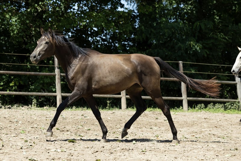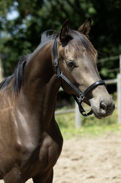 Zeer aansprekende valk merrie. Ze is zadelmak en wordt verder aangereden op het moment. Mens gericht en braaf in de omgang. Staat met andere paarden op de paddock. Is bij ons gefokt, moeder ook aanwezig. Merrie kan fijn bewegen en zou zeer geschikt zijn voor de dressuur. Opvallende verschijning. X-ray gekeurd.