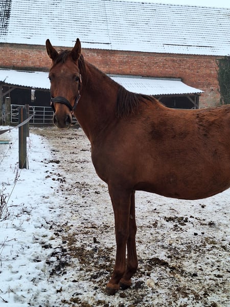 Verkaufe eine elegante KWPN-Stute, geboren im Jahr 2022. Diese wunderschöne Fuchsstute besticht durch ihre ansprechende Erscheinung und ihr vielversprechendes Zuchtpotenzial. Mit einem Stockmaß von 164 cm ist sie eine beeindruckende Erscheinung. Sie stammt aus einer renommierten Zucht und vereint Qualität, Charakter und Vielseitigkeit. Sie ist tragend vom Hengst Fair Deal (v. Franklin-Fürstenball) und muss in 04/2026 fohlen. Sie wird aus zeitlichen Gründen verkauft