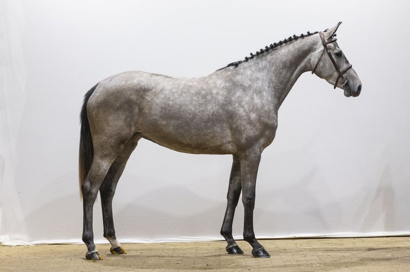 Schöner grauer Wallach, erst seit vier Wochen im Sattel. Er hat eine gute Einstellung und ist bereits angenehm zu reiten. Er nimmt alles leicht auf und bleibt im Körper entspannt. Über die Sprünge ist er vorsichtig und springt auch größere Hindernisse natürlich. Ein junges Pferd mit Qualität und natürlichem Talent. Vater Ci Ci Senjor Ask (1,60 m) stammt von Cassini I (1,60 m) ab, aus einer Capitol I-Linie. Er hat mehrere 1,60-m-Sportler hervorgebracht, darunter Ci Beau Ask, Cicci BJN und Senjor Catello. Eine bewährte Holsteiner Zuchtlinie mit fest verankerter Springqualität und Technik. Mutter Nateusie-S (von Ducati van Schuttershof, 1,55 m) geht zurück auf Arusa S (von Berlin, 1,60 m). Aus dieser direkten Linie stammen mehrere Sportpferde zwischen 1,45 m und 1,60 m, darunter Amareusa S, Oteusi, Illusion, New Mexico, Re Mexico, Jumping Jack ZF, India Blue ZF, Goteusi und Uterusa. Weiter oben in der Mutterlinie, durch Ferusa (von Le Mexico) und Terusa (von Lucky Boy xx), bringt diese Familie konsequent Sportpferde und zugelassene Hengste im Bereich von 1,45 m bis 1,60 m hervor. Eine starke und bewährte Leistungslinie.