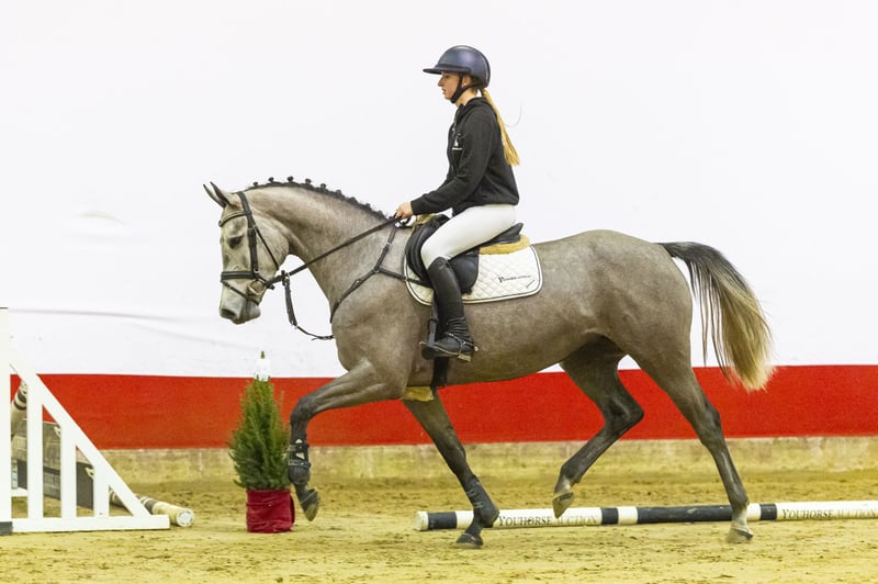 Rolinda van Lange Weeren is a modern mare with excellent sport potential. She has a soft mouth, a modern canter and a very good mentality. Despite being only about 2.5 months under saddle, she learns quickly and approaches her work with confidence. She jumps quickly off the ground, shows carefulness, a very good technique and already displays natural scope. A mare that gives confidence and shows clear potential for future development. Her sire Cohinoor VDL (Cornet Obolensky x Stakkato) competed at 1.45m level and is known for passing on reflexes, sharpness and modern sport quality. His offspring include several international performers such as Lucardi (1.55m), Light-Kohinoor (1.55m) and C-Livia RV Z (1.50m). Dam Melinda van Lange Weeren, by History-Rilexy (Arezzo VDL), descends from a strong KWPN family. Granddam Belinda van Lange Weeren (by Quite Easy I) produced Jolanda van Lange Weeren, successful at 1.35m level. Further down the damline, the family stands out for combining showjumping and Grand Prix dressage performance, highlighting the quality and longevity of this line Rolinda van Lange Weeren offers rideability, quick reflexes and the right mentality – a modern mare with clear added value for sport and breeding.