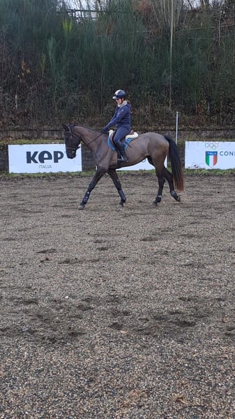 Cavalla molto brava sia a mano che nel lavoro in sella predisposta al dressage ma salta anche in campagna. Molto educata ottima genealogia il padre e il nonno sono medaglie olimpiche di dressage.