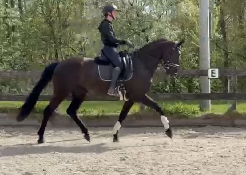 Sind Sie auf der Suche nach einem echten Blickfang für die Zukunft? Mit Stolz bieten wir diese äußerst talentierte, vierjährige Schwarzbraune Dressur-Stute an. Mit ihrer beeindruckenden Ausstrahlung, starken Abstammung und einer Stockmaß von ca. 1,70 m besitzt sie alles, um zu einem erfolgreichen Sportpferd heranzuwachsen. Wichtigste Merkmale: - Alter: 4 Jahre (geboren 2022) - Geschlecht: Stute - Farbe: Schwarz - Stockmaß: ca. 1,70 m - Zuchtbuch: KWPN - Abstammung: Lowlands x Desperado Abstammung & Potenzial Der Vater ist der bekannte Hengst Lowlands, der für seine fantastische Einstellung und drei überdurchschnittliche Grundgangarten hoch gelobt wird. Von der Mutterseite stammt der Grand-Prix-Hengst Desperado, was für zusätzliches „Go“, Flexibilität und einen starken Hinterbeineinsatz sorgt. Die Stute hat eine moderne, ansprechende Konstitution und bewegt sich mit viel Leichtigkeit, Balance und Qualität. Charakter & Status Sie wurde im letzten Jahr eingeritten und ist nach einer kurzen Pause seit etwa zwei Monaten wieder unter dem Sattel. Sie nimmt dies angenehm und arbeitswillig auf, doch aufgrund ihres jungen Alters und begrenzter Erfahrung ist sie (noch) nicht für den Anfänger geeignet. Im Umgang ist sie ehrlich und sozial gegenüber anderen Pferden. Außerdem ist sie leicht beim Hufschmied und vertraut mit Transport auf dem Anhänger. Gesundheit - Röntgenologisch sporttauglich (inklusive Hals- und Rückenaufnahmen) - Frei von (Hallen-)Gebrechen - Nachuntersuchung auf Kosten des Käufers möglich Preis Auf Anfrage (höhere Preisklasse) Kontakt Bei ernsthaftem Interesse können Sie sich für weitere Informationen, Fotos oder Videos gerne melden. Name: Esveld Standort: Utrecht Telefon: 06-21532617