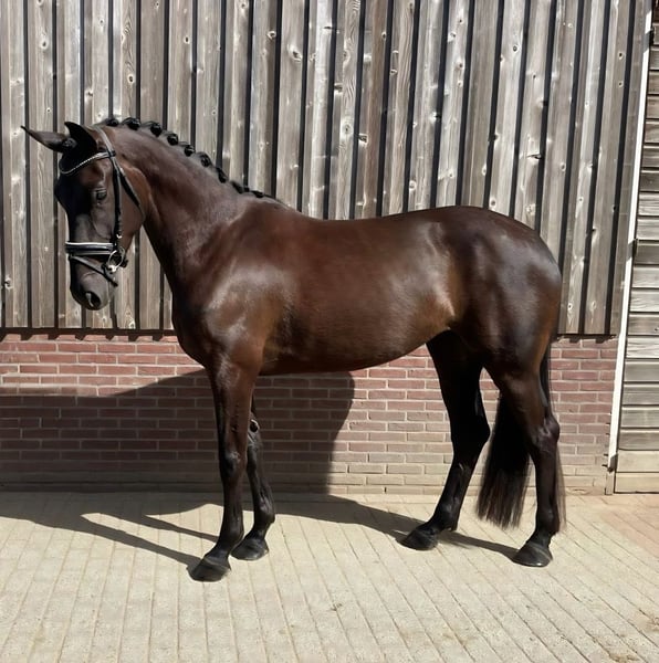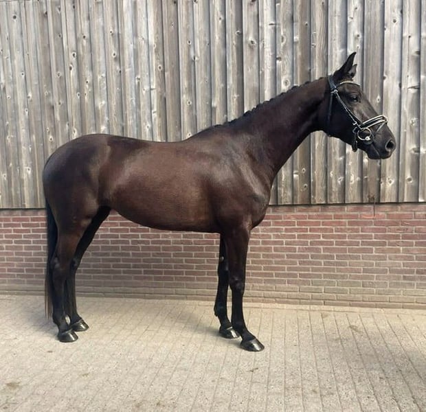 Bent u op zoek naar een echte eyecatcher voor de toekomst? met trots bieden wij deze zeer getalenteerde, 4-jarige zwart/bruine dressuurmerrie aan. Met haar indrukwekkende uitstraling, sterke afstamming en royale stokmaat van circa 1.70m heeft zij alles in huis om uit te groeien tot een succesvol sportpaard. Belangrijkste kenmerken: - Leeftijd: 4 jaar (geboren in 2022) - Geslacht: merrie - Kleur: Zwart - Stokmaat: ca. 1.70m - Stamboek: KWPN - Afstamming: Lowlands x Desperado Afstamming & potentie De vader is de bekende hengst Lowlands, geroemd om zijn fantastische instelling en drie bovengemiddelde basisgangen. Aan moederszijde vinden we de Grand-Prix hengst Desperado, wat zorgt voor extra 'go' souplesse en een sterk achterbeengebruik. De merrie heeft een moderne, aansprekende bouw en beweegt met veel lossigheid, balans en kwaliteit. Karakter & status Ze is vorig jaar zadelmak gemaakt en nu na een tijdje rust sinds +- 2 maanden weer opgepakt onder het zadel. Ze pakt dit fijn en werkwillig op, maar gezien haar jonge leeftijd en beperkte ervaring is ze (nog) niet geschikt voor de beginnende ruiter. In de omgang is ze eerlijk en sociaal naar andere paarden. Daarnaast is ze makkelijk bij de hoefsmid en vertrouwd met transport op de trailer. Gezondheid - Röntgenlogisch goedgekeurd voor de sport (inclusief hals en rug) - Vrij van (stal) gebreken - Herkeuren toegestaan op kosten koper Vraagprijs Op aanvraag (hogere prijsklasse) Contact Bij serieuze interesse kunt u contact opnemen voor meer informatie, foto's of video's. Naam: Esveld Locatie: Utrecht Telefoon: 06-21532617
