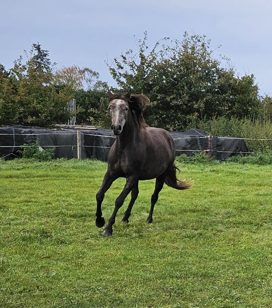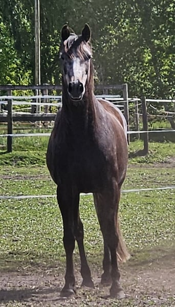 Je vous propose ici ma magnifique petite jument à la vente, en raison de problèmes de santé et de manque de temps de ma part. La petite grisette, comme elle est affectueusement appelée ici, a été longeée cet été, elle connaît le licol, la selle avec ses étriers, le caveçon et la bridon. Nous nous sommes déjà allongés dessus. Elle accepte tout docilement. Il serait maintenant possible de commencer un entraînement doux. La grisette connaît également le travail à pied, les barres, les pylônes, etc. Elle est bien sûr ferrée et habituée au camion. Facile à nourrir, sans mauvaises habitudes. En bonne santé, vaccinée et vermifugée. Elle a grandi ici en troupeau et s’entend avec les juments comme avec les hongres. En raison de son retard de développement (Espagnol), elle n’a été commencée qu’à cette année. Je pourrais très bien l’imaginer dans des disciplines comme l’équitation d’extérieur ou le travail à la main, c’était d’ailleurs mon objectif. Si vous souhaitez faire connaissance avec cette petite, n’hésitez pas à me contacter. Je souhaite pour elle un joli foyer pour la vie. Des vidéos de son travail sont disponibles en cas d’intérêt sérieux. Sa demi-sœur a déjà réussi en compétition en saut A et en dressage A. La grisette est le fruit de l’amour et possède donc simplement un passeport. Cela m’importait peu personnellement, car on peut tout à fait s’y fier.