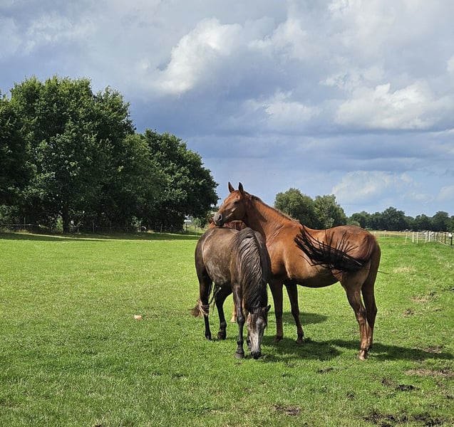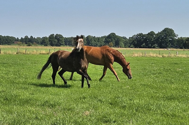 Hier ist die niederländische Übersetzung des Textes: --- Hier bied ik mijn prachtige, kleine merrie te koop aan vanwege gezondheids- en tijdsproblemen van mijn kant. Het schimmelletje, zoals ze hier liefdevol genoemd wordt, is deze zomer longeer- en grondwerk gedaan, kent de teugel, zadel met stijgbeugels, halster en bit. We hebben er ook al op gelegen. Ze doet alles braaf mee. Je zou nu kunnen beginnen met een zachte zadelmak maken. Het schimmelletje kent ook grondwerk, cavaletti, pylonen, enzovoort. Ze is uiteraard smederij- en trailertrouw. Lichtvoerig en zonder ongewenst gedrag. Gezond, gevaccineerd en ontwormd. Ze is hier opgegroeid in een kudde en is sociaal met merries en hengsten. Vanwege haar late ontwikkeling (Spaanse bloedlijn) is ze pas dit jaar begonnen met training. Ik kan me haar heel goed voorstellen in disciplines zoals bijvoorbeeld Equitation of Working Equitation, dat was eigenlijk mijn doel. Als u haar graag wilt leren kennen, neem dan gerust contact op. Ik wens haar een mooi thuis voor het leven. Video’s van haar werk zijn beschikbaar bij serieuze interesse. Ze heeft een halfzus die succesvol is in de springsport (A-lijn) en dressuur (A-lijn). Het schimmelletje is een kind van de liefde en heeft daarom slechts een paspoort. Voor mij persoonlijk was dat geen probleem, omdat het op papier niet uitmaakt. --- Wenn du noch Anpassungen möchtest, lass es mich wissen!