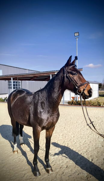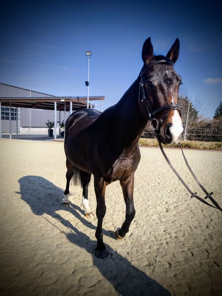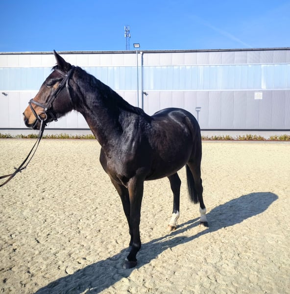 Verkaufe talentierte KWPN-Stute, geb. 2021, mit viel Potenzial für den Springsport. Die dunkelbraune, liebenswerte Stute besticht durch ihre elegante Erscheinung und ein beeindruckendes Stockmaß von 163 cm sowie durch ihren wundervollen Charakter. Sie ist gut geritten, aufmerksam und zeigt eine vielversprechende Springanlage. Dank ihrer soliden Grundausbildung und eines regelmäßigen Trainings bei Marco Hanisch und ihrem freundlichen Wesen ist sie sowohl für ambitionierte Nachwuchsreiter als auch für erfahrene Reiter geeignet. Ein echtes Springtalent, das noch viel Entwicklungspotenzial bietet. Neben dem Springen ist sie im Gelände ein absolutes Verlasspferd. Trotz ihres jungen Alters geht sie problemlos alleine vom Hof und zeigt keinerlei Unarten. Tierarzt, Hufschmied und lange Hängerfahrten stellen für Radar Love kein Problem dar. Sie kennt die Boxenhaltung sowie den Offenstall. Mit ihren Artgenossen zeigt sie sich stets freundlich und rangmittig. Aktuell läuft sie barhuf. Impfungen und Wurmkuren sind immer zeitgerecht erfolgt. Bei Interesse freue ich mich auf Ihre Kontaktaufnahme.