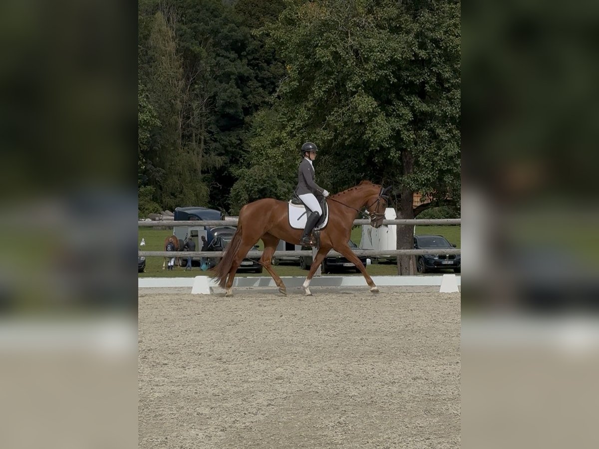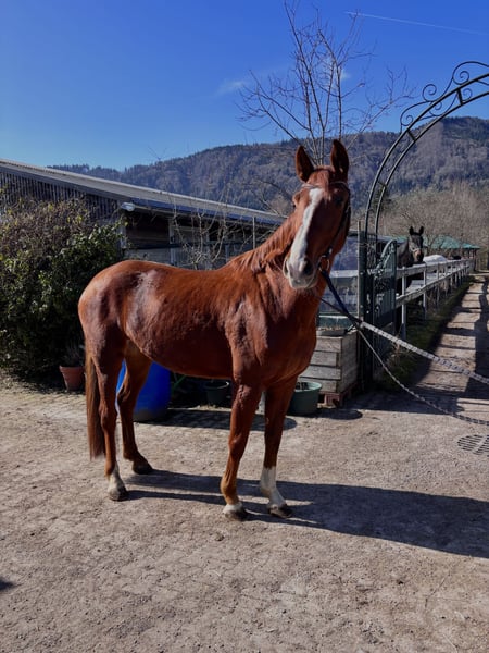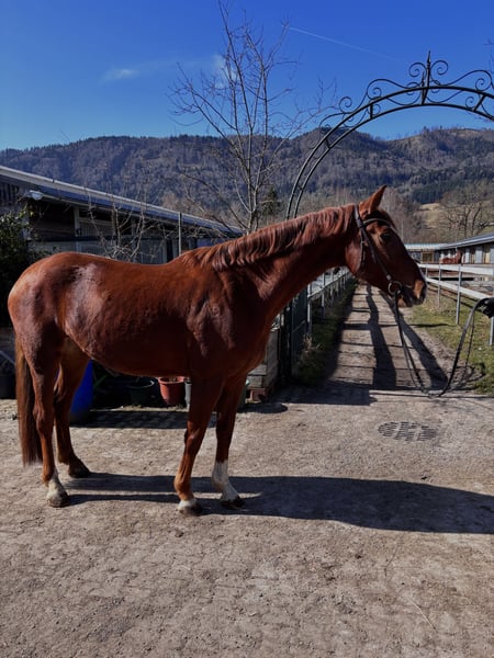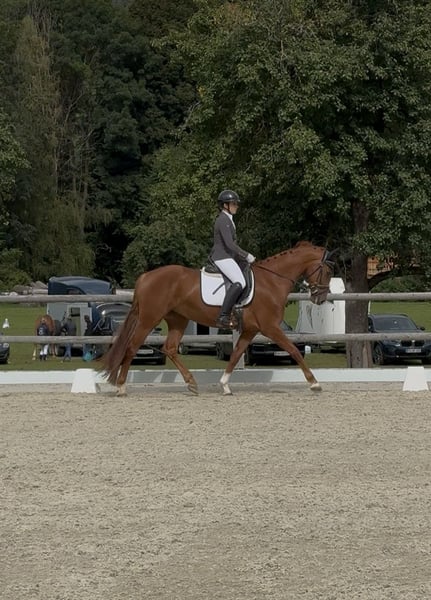 Tina ist eine wunderschöne, sehr liebe Stute mit angenehmem Charakter und großer Rittigkeit. Sie lernt schnell, ist motiviert bei der Arbeit und ihrem Reiter stets zugewandt. Mit ihren schönen Schrittarten und einem wundervoll versammelten Galopp macht sie mit 5 Jahren unter dem Sattel viel Freude. Tina hat bereits Turniererfahrung und konnte letzte Saison eine A-Dressur sehr erfolgreich gewinnen. Für dieses Jahr ist der Start in der Klasse L geplant. Auch im täglichen Umgang ist sie unkompliziert, brav vom Boden aus und natürlich immer für ein Leckerli zu begeistern.