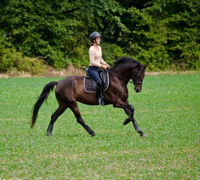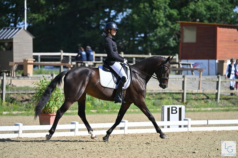 DRESSAGE HORSE | Young Mare (2020) ✨PEGASUS✨ (GLAMOURDALE x NEGRO) · Studbook: KWPN · Gender: Mare · Year of Birth: 2020 · Level: Young horse · Height: 1.68 m / 16.2 hh · X-rays: On request · Location: France, Normandy (14) Elegant and elastic mare, combining finesse and lightness. Three good gaits, with a special mention for her canter — a true signature of Glamourdale. She has a lovely temperament, lives in a herd during the day and is stabled at night. Up to date on vaccinations and dental care. Regularly followed by an osteopath and shiatsu practitioner. More information PM or 📞 WhatsApp: +33 7 81 12 80 86