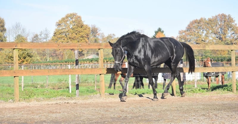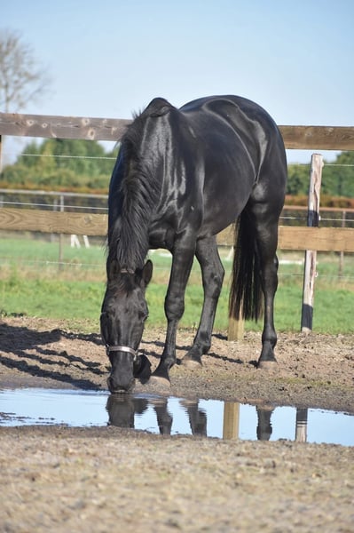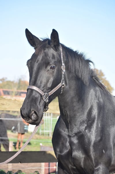 Bloedmooie , gitzwarte , correcte Kjento x Lord Leatherdale merrie Ontmoet Paulina: werkelijk waar een paard uit een sprookje. Met haar diepzwarte vacht en sprekende ogen en mooie , volle bouw is ze een echte verschijning. Paulina is 5 jaar oud, ongeveer 1.72 m hoog en heeft een uitzonderlijke afstamming: Kjento x Lord Leatherdale. Klik HIER voor haar papier . We hebben haar rechtstreeks van de eerste eigenaar overgenomen, waar ze van jongs af aan met veel aandacht is opgegroeid en goed in de hand is geweest. Ze is een echte lieverd met een fijn karakter. Blijft gewoon zonder problemen alleen op stal staan terwijl ze toch heel sociaal is . Paulina is onlangs volledig klinisch en röntgenologisch goedgekeurd, inclusief rugfoto’s. Momenteel zijn we haar training verder aan het oppakken, wat ze met veel talent en inzet doet. Naarmate haar opleiding vordert, zal de prijs meegroeien. Is onlangs door de tandarts behandeld, in bezit van een recent rapport. Prijs: € 9750,- Incl merkzadel en dekje