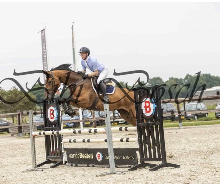 5-jarige merrie (± 1.73m) uit de sterke prestatiestam: Eldorado van de Zeshoek x Verdi TN x Heartbreaker Röntgenologisch goedgekeurd inclusief hals en rug. Loopt momenteel parcours op 1.20m niveau en toont daarbij veel vermogen, goede techniek en een fijne instelling. Een merrie met voldoende bloed die altijd voor de sprong gaat en graag werkt. Goed dressuurmatig doorgereden, licht aan de hulpen en prettig te rijden. Geschikt voor een ambitieuze ruiter die met een kwaliteitsvol jong paard wil doorgroeien in de sport. Ook interessant voor een serieuze amateur met begeleiding. Een merrie met kwaliteit, vermogen en toekomstperspectief. Voor meer informatie of video graag een bericht.