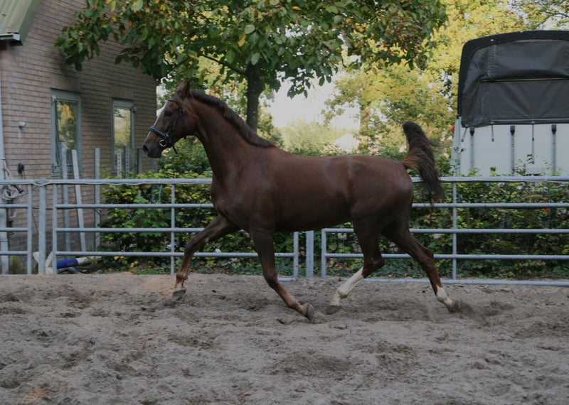 For sale: 5-year-old chestnut mare; The mare named Pico-bala was bred by us and was started under saddle at the beginning of the year. Last summer she was backed and she is taking to the work well and enjoys it. A lot of groundwork has also been done with Pico. She has experience in traffic and has been on trail rides. Pico has a people-oriented character, is a cheerful horse, and likes to be put to work. Her pedigree is Kane BFT x Atleet x Vaandager HBC. The dam line is the well-known Landsvrouwe line. She has been x-rayed.