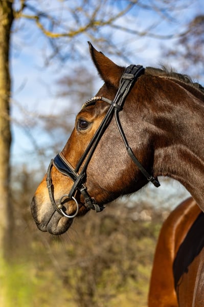 This very attractive bay mare impresses across the board with her composure, rideability, and quality. She has three very good basic gaits and consistently presents herself as forward-moving yet always controlled, honest, and focused. Under saddle, she is absolutely rideable, easy to sit, and always gives her rider a good feeling. She is not easily disturbed, remains clear-headed, and displays an exceptionally stable and reliable temperament. For this reason, she is also very suitable for less experienced riders or well-educated young riders. In handling as well as under saddle, she is very attentive, friendly, and trusting towards humans. It is clearly noticeable that she has been handled gently and has had no negative experiences so far. A horse that cooperates, builds trust, and shows joy in working together. With her modern, appealing exterior, excellent character, and high-quality movement, she is a desirable dressage horse that offers many opportunities—from ambitious amateurs to a solid competition partner. She is also interesting from a breeding perspective: she descends from Hotline and Vivaldi, providing a high-quality, proven dressage pedigree that makes her attractive for breeding purposes as well. A versatile, honest, and high-quality dressage horse that impresses with her character, quality, and reliability.