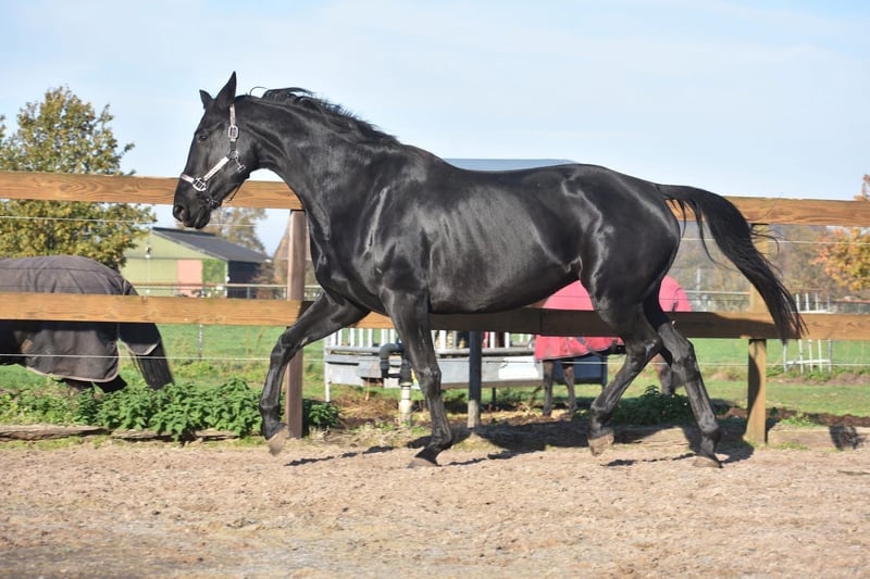 Hübsche, tiefschwarze, korrekt gebaute Kjento x Lord Leatherdale-Stute Lernen Sie Paulina kennen: wirklich ein Pferd aus einem Märchen. Mit ihrem tiefschwarzen Fell, ausdrucksvollen Augen und ihrer schönen, kräftigen Erscheinung ist sie eine beeindruckende Erscheinung. Paulina ist 5 Jahre alt, ca. 1,72 m groß und besitzt eine außergewöhnliche Abstammung: Kjento x Lord Leatherdale. Klicken Sie HIER für ihre Papiere. Wir haben sie direkt vom Erstbesitzer übernommen, bei dem sie von klein auf mit viel Liebe aufgezogen wurde und gut im Umgang ist. Sie ist eine echte Schmusebacke mit einem angenehmen Charakter. Sie bleibt problemlos allein im Stall, obwohl sie sehr sozial ist. Paulina wurde kürzlich vollständig klinisch und röntgenologisch untersucht, inklusive Rückenszertifikat. Derzeit nehmen wir ihr Training wieder auf, das sie mit viel Talent und Einsatz zeigt. Mit fortschreitender Ausbildung wird der Preis steigen. Sie wurde kürzlich vom Tierarzt behandelt und besitzt einen aktuellen Bericht. Preis: 9.750 € inklusive Markenreitkappe und Abschwitzdecke