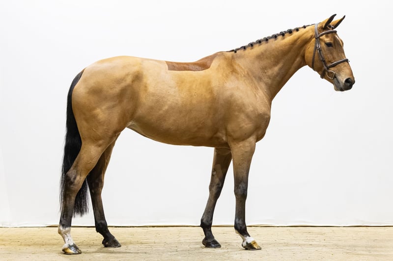 Noa is a seven-year-old mare with experience at 1.20 m level. She is suitable for an experienced amateur rider or a professional. She has a big heart, a very good mentality and always wants to do her best. Noa is careful and sharp over the jump, is keen to go to the fence and shows sufficient scope. She has quite a bit of blood, which gives her plenty of go, but also means she is not suitable for every amateur. For a rider with experience and feel, she is an honest and rewarding sport partner. Under saddle, Noa shows a willing attitude and enjoys her work. She is careful, honest and always tries. She is a horse that gives confidence to her rider and clearly enjoys jumping. Sire Andiamo Semilly, by Diamant de Semilly, competed at 1.60 m Grand Prix level and achieved top placings including second place in the CSI3* 1.60 m in Maubeuge and rankings at CSI5* level in Lausanne. As a sire, he is known for passing on scope, mentality and strong jumping technique. The damline is very strong and deeply proven in sport. Dam Rolien (by Ahorn) competed at 1.35 m level and produced several sport horses, including Charien and Darlien (both 1.30 m) and Georgio, who competed at 1.35 m with international results in Oliva. Further down the line we find numerous sport horses competing at 1.30 m to 1.60 m level, such as Casablanca (1.40 m), Boulahrouz (1.40 m), Unex Arantos (1.60 m) and Elsa (1.60 m). This family is known for its toughness, sport mentality and long-term reliability. Noa is an honest sport mare with plenty of go, a strong mentality and a proven performance pedigree. A horse that wants to work, is careful over the jump and well suited for a rider who can appreciate and use her qualities.