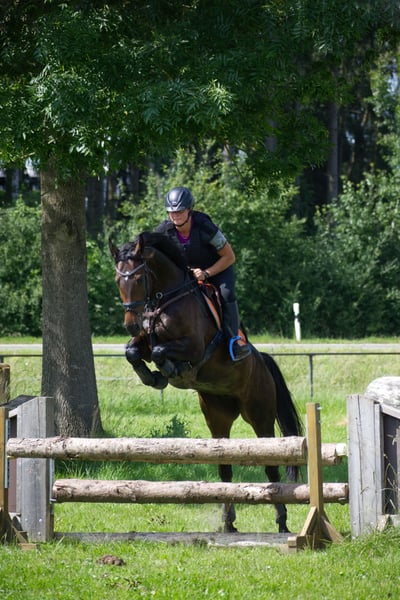 Prachtige, fijne merrie te koop als jong paard voor de eventing, dressuur of als top allrounder. Dressuur L en A eventing gewonnen, L-dressuur, cross-country L, springpaarden L en combi L geplaatst. Heel fijn te rijden, in de dressuuropleiding richting M begonnen. Super braaf ook in onbekende omgeving tijdens het buitenrijden, kent alles: bruggen, door de stad en langs de weg, tractoren, wilde honden, koeien, kippen, lama's, schapen, enz. Top in de omgang. Alleen laden en naar het concours, alleen opstellen, enz. helemaal geen probleem. Hierdoor ook absoluut geschikt voor de jacht of een trektocht. Gezond en top verzorgd, uit een geweldige stalling met veel beweging. Röntgenfoto's van het einde van het tweede levensjaar zijn zonder bevindingen beschikbaar. Bij interesse graag alleen telefonisch contact opnemen en niet via het contactformulier.