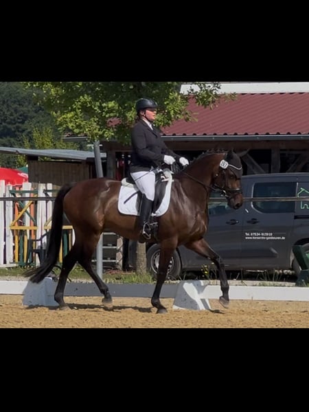 Bellissima e fine cavalla in vendita come giovane cavallo per il completo, il dressage o come top allrounder. Ha vinto in dressage L e A, posizionata in completo L, dressage L, salto L e combinato L. Molto facile da montare, ha iniziato l'addestramento in dressage verso M. Super tranquilla anche in ambienti sconosciuti per le passeggiate, conosce tutto: ponti, attraversare la città e lungo la strada, trattori, cani selvatici, mucche, galline, lama, pecore, ecc. Ottima nel maneggio. Caricata da sola e portata ai concorsi, da sola al montaggio, ecc., nessun problema. Pertanto, è assolutamente immaginabile anche per la caccia o una passeggiata a cavallo. Sana e ben curata, proveniente da un'ottima stalla con molto movimento. Radiografie di fine 2 anni disponibili senza referto. Per ulteriori informazioni, si prega di contattare solo telefonicamente e non tramite il modulo di contatto.