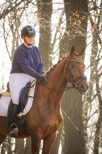 Orange Queen to 7-letnia klacz rasy KWPN, około 1,67 m w kłębie, po All at Once, Ampere, Gribaldi x Stedinger, Sandro Hit, Cavalier. *Orange Queen* to przepiękna, w pełni nadająca się do jazdy i bardzo spokojna klacz. Doskonale sprawdzi się jako koń szkoleniowy. Jest startowa i doświadczona na zawodach. Lekko przechodzi w uzębienie i nie jest wrażliwa ani nerwowa na pomocki. Jest wygodna w siodle i daje poczucie dużego bezpieczeństwa. Spokojnie chodzi w terenie oraz w ruchu ulicznym. Pokazuje ładny skok, a praca z przeszkodami sprawia jej przyjemność. !!! KONIECZNIE OBEJRZYJ JEJ FILM !!! W pracy z człowiekiem jest również skarbem. Przyjazna, dobrze wychowana, nie stękająca. Aktualne badanie AKU ma już za sobą. Aktualny film znajdziesz tutaj w ogłoszeniu lub pod linkiem: https://www.youtube.com/watch?v=SdnWTBh-gzM Hodowla koni Dederichs – Twój partner w zakupie konia Kontakt i dostępność: Zapytania prosimy kierować wyłącznie telefonicznie pod numer 0173/9792139 Poniedziałek – piątek: 09:00 – 18:00 Sobota: 09:00 – 15:00 Niedziela: dzień wolny Śledź nas w mediach społecznościowych! Poznaj naszą codzienność z końmi na Instagramie, TikToku i Facebooku pod nazwą Pferdehandlung Dederichs Rabat: Przy natychmiastowym odbiorze nowego wymarzonego konia otrzymujesz rabat od 5 % do 10 % Próba jazdy i prezentacja: • Próba jazdy: 40 € za konia (max. 2 jeźdźców), kwota zostanie odliczona od ceny zakupu • Święta: próba jazdy 50 € • Prezentacja przez naszych jeźdźców: 30 € za konia (przygotowanie, praca na ziemi itp.) Badanie przedzakupowe i transport: • Wiele naszych koni ma już aktualne badanie AKU • Oczywiście możesz zabrać własnego weterynarza • Chętnie zorganizujemy badanie • Chętnie pomożemy również w transporcie do nowego domu Więcej koni na sprzedaż: W naszym stajennym asortymencie znajdują się także inne konie na sprzedaż, które jeszcze nie są dostępne online. Jeśli Twoje wymarzone konie jeszcze nie ma w ofercie, nie wahaj się z nami skontaktować. Ważne informacje: • Szacunkowe wzrosty są podane orientacyjnie i nie zostały dokładnie zmierzone • Wszystkie opisy są subiektywnymi ocenami sprzedającego i nie stanowią gwarancji cech konia