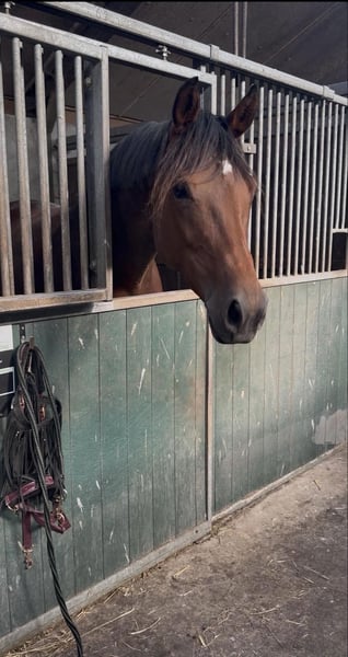 KWPN merrie Omonte Utopia – talentvolle jonge merrie met topafstamming Te koop aangeboden: Omonte Utopia, een KWPN merrie, bruin, geboren op 22 mei 2019, met een stokmaat van 1.68 m. Omonte komt uit een zeer interessante afstamming: Incognito x Painted Black, wat haar niet alleen aantrekkelijk maakt als sportpaard, maar ook zeker als toekomstige fokmerrie. In 2021 is zij röntgenologisch goedgekeurd voor de sport. Ze is zadelmak en kent het basiswerk, maar is dressuurmatig nog groen. Hierdoor is zij ideaal voor iemand die haar zelf verder wil opleiden. Omonte is erg werkwillig, leert graag en gaat met plezier aan het werk. Daarnaast geniet ze van bosritten, wat haar een fijn en veelzijdig paard maakt. Ik zoek voor haar een ambitieuze ruiter — zowel amateur als professional — die de tijd en rust neemt om haar verder te ontwikkelen en samen met haar wil groeien in de sport. 📍 Geschikt voor: ambitieuze amateur / professional 🐴 Karakter: werkwillig, fijn te rijden, leergierig 🧬 Afstamming: Incognito x Painted Black 💰 Vraagprijs: 7500 Voor meer informatie of een kennismaking, graag een serieus bericht.