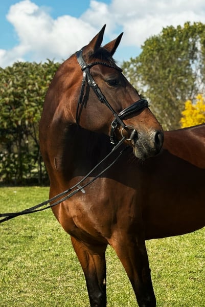 Una bellissima puledra del 2018 da Glamourdale. Movimenti eccezionali, venduta ben al di sotto del suo valore a causa di un infortunio (un cheratoma sul suo zoccolo anteriore sinistro) e ora è ancora poco esperta per la sua età. Ha già avuto un puledro.