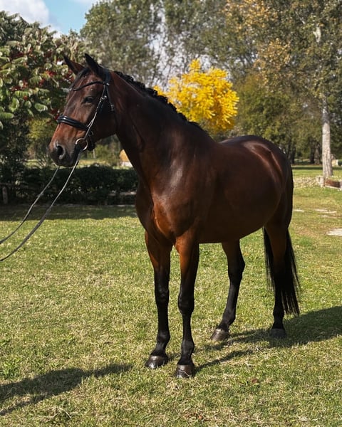 A beautiful 2018’ mare from Glamourdale. Top movements, selled way below her value because she had a keratoma on her left front hoof and now she’s still green for her age. Really good character, a lovely mare. Scared of nothing. Not recommended for juniors or amateur, she’s really forward with a sensitive mouth.