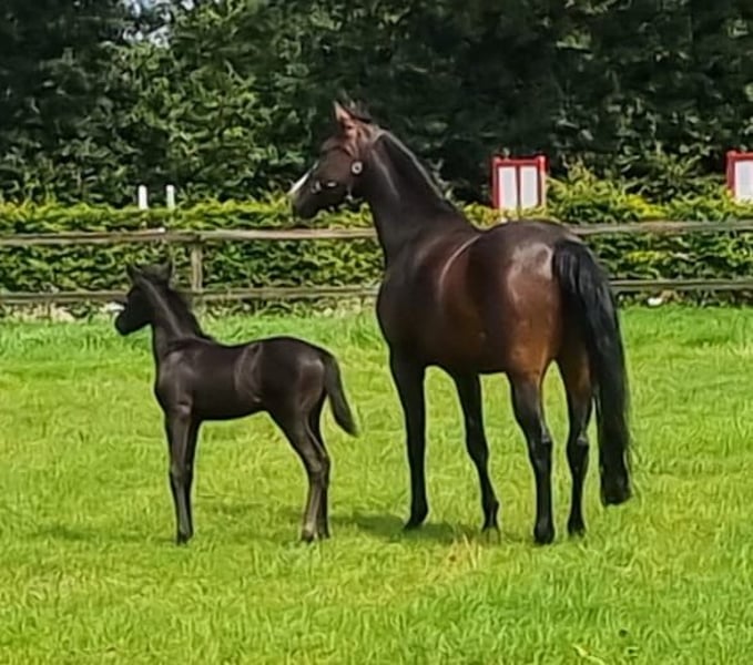 Good breeding mare, like out of a book, easy to get in foal and foals within a few minutes, afterbirth follows quickly. Omara is a star mare who was eligible for the central inspection but due to circumstances, we did not go. Last year she had a beautiful filly foal by Dreamboy and this year a colt foal by One Million. She breeds very nicely and is an excellent mother. The mare can be sold once the foal is weaned. Preferably to a 5-star home where she can also enjoy a lovely pasture and good stable facilities. For more information, please contact via email or WhatsApp if seriously interested.