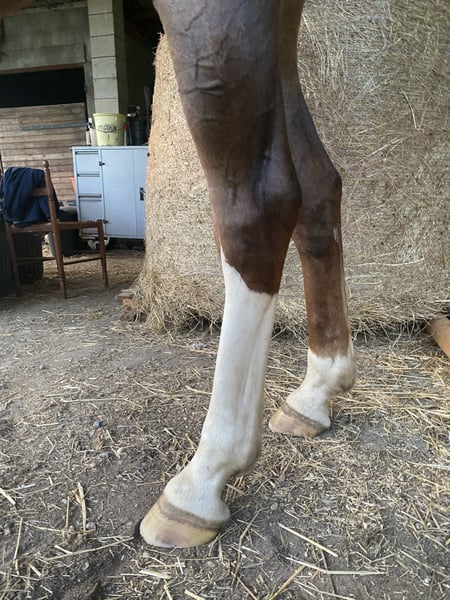Orange Flair is een prachtige merrie, afkomstig uit de combinatie Totilas x Florencio x Krack C. Ze heeft een harmonieus model met veel formaat en beschikt over drie mooie, luchtige gangen. Ze werd op 3-jarige leeftijd Kampioen in de zuidelijke regio tijdens de KWPN-merriekeuring in Nederland. Ze is zeer prettig in de omgang en erg zacht in de verzorging. Ze kent de stapmolen en gaat elke dag naar de paddock. Ze is op 3-jarige leeftijd ingereden maar heeft weinig gewerkt, waardoor ze nog vrij groen is. Ze kent echter al schouderbinnenwaarts, appuyementen en travers in stap en draf. In galop beheerst ze stap-galop en galop-stap overgangen. Momenteel werken we aan het contra-galop. Ze gaat zowel alleen als in gezelschap op buitenrit. Een veelbelovende merrie voor iemand die de tijd wil nemen om haar correct op te leiden. Orange Flair is a stunning mare from the combination Totilas x Florencio x Krack C. She has a harmonious conformation with good height and three lovely, airy gaits. At 3 years old, she was Champion in the southern region during the KWPN mare classification in the Netherlands. She is very pleasant to handle and extremely gentle in her daily care. She is familiar with the walker and goes to the paddock every day. She was started under saddle as a 3-year-old but did very little work during her first years, so she is still quite green. However, she already knows shoulder-in, leg yields, and haunches-in at walk and trot. In canter, she can perform walk–canter and canter–walk transitions, and we are currently working on counter-canter. She hacks out both alone and in company. A promising mare for someone willing to take the time to develop her correctly. Orange Flair est une magnifique jument issue de l'accouplement entre Totilas x Florencio x Krack C. Elle a un modèle harmonieux avec de la taille et possède 3 jolies allures aériennes. Elle a été Championne à 3 ans dans la région sud lors du classement des juments KWPN en Hollande. Elle est très agréable à manipuler et très douce aux soins. Elle connaît le marcheur et va tous les jours au paddock. Elle a été débourrée à l’âge de trois ans, mais a très peu travaillé durant ses premières années, ce qui fait qu’elle est encore assez verte. Cependant, elle connaît déjà l’épaule en dedans, les cessions à la jambe et le travers au pas et au trot. Au galop, elle sait faire les pas-galop/galop-pas. Nous travaillons actuellement sur le contre galop. Elle part en balade seule ou accompagnée. Une jument prometteuse pour qui saura prendre le temps de la former. Orange Flair ist eine wunderschöne Stute aus der Anpaarung Totilas x Florencio x Krack C. Sie hat ein harmonisches Exterieur mit viel Größe und verfügt über drei schöne, leichtfüßige Grundgangarten. Mit 3 Jahren wurde sie Champion in der südlichen Region bei der KWPN-Stuteneintragung in den Niederlanden. Sie ist sehr angenehm im Umgang und ausgesprochen sanft in der Pflege. Sie kennt die Führanlage und geht täglich auf die Weide/Paddock. Sie wurde im Alter von drei Jahren angeritten, hat in den ersten Jahren jedoch nur wenig gearbeitet, weshalb sie noch recht grün ist. Dennoch beherrscht sie bereits Schulterherein, Schenkelweichen und Travers im Schritt und Trab. Im Galopp kann sie Schritt-Galopp und Galopp-Schritt Übergänge. Zurzeit arbeiten wir am Kontergalopp. Sie geht alleine oder in Begleitung ins Gelände. Eine vielversprechende Stute für jemanden, die/der sich die Zeit nimmt, sie sorgfältig auszubilden.