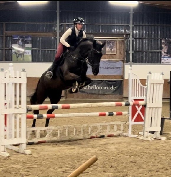 Zum Verkauf steht meine 7-jährige schwarzbraune Stute mit guter Abstammung. Niki ist seit 3 Jahren in meinem Besitz und hat eine ordentliche dressurmäßige Grundausbildung genossen. Sie wurde von mir über Springpferde A und L bis L-Springen vorgestellt und platziert. Ganz aktuell waren wir vor zwei Wochen noch siegreich im A**-Springen. Aufgrund der Geburt meines Kindes suche ich ein 5 Sterne zu Hause, gerne auch fördernde Hände. Niki hatte bereits bei meinem Kauf einen Befund, der ihr bis heute keine Probleme macht, daher wurde der Preis bereits angepasst und ist als VB inseriert. Bei ernsthaftem Interesse freue ich mich über einen Anruf und gebe gerne detaillierte Auskünfte. Für ein Probereiten würden 30 Euro anfallen, die beim Kauf natürlich angerechnet werden.